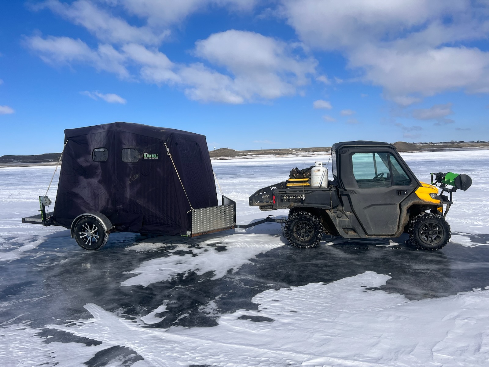 Our ice fishing trips cover a large area of Fort Peck, allowing us to stay on the bite throughout the day. We use a combination of tip-ups, jigging rods, UTVs, and ATVs to move efficiently between hotspots following fish as they migrate and feeding patterns shift.