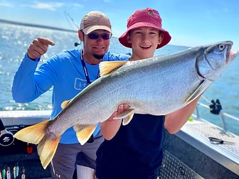 When surface temperatures climb, lake trout retreat to cooler, deeper water, often more than 100 feet down. While summer fishing can be technical and rewarding, we generally give the lake trout a break during this period due to their high mortality rate in warm conditions. Instead, we focus on salmon fishing throughout July and August, though it’s not uncommon to hook into a few lake trout while targeting salmon.